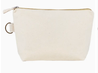 Enhance your essentials with our toiletry bag / accessory pouch made from eco-friendly 12 oz cotton canvas. Made in India using sustainable cloth material, materials, this pouch measures 11W x 7H x 3D inch.